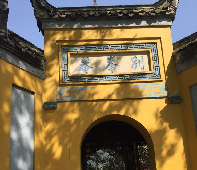 由吸江楼向西,我们来到了焦山双峰之阴的别岭上,在这翠竹环抱的山助中,有一座别致的方形四合院,称为“别峰庵”。别峰是指该岭有别于焦山山顶的东峰和西峰之意。深山孤寺,人迹罕至的别峰庵,庵内北侧有小斋三间,天井中有一花坛,桂花树两株,修竹数竿,环境清雅幽绝。这里就是世称诗、书、画“三绝’’的清朝著名画家、扬州八怪之一的郑板桥于雍正年间在此攻读之处。过道门头上题有“郑板桥读书处”的横额,门上还保留着当年郑板桥手书“室雅何须大,花香不在多”的对联,别峰庵因此名闻遐迩。1984年当代艺术大师刘海粟题写 “板桥书屋”4字,现勒石于庵左圆门之上。别峰庵始建于宋代,明万历六年(1578年)重建。宋代高僧佛印法师写下“绝顶天寻处,何人为指南。回头见知识,原在别峰庵”的诗句。内设书屋、客厅、卧室,陈设竹器家具。