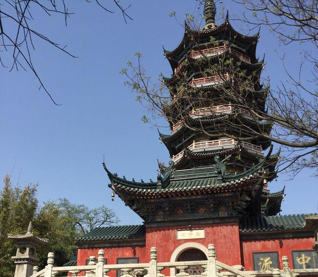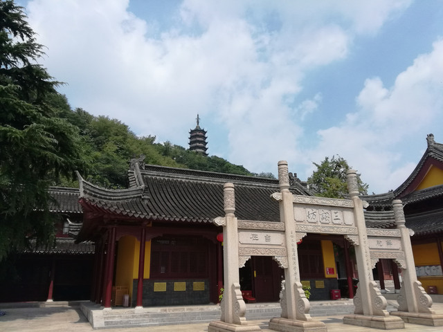“焦山有座寺,藏在山凹里,不见形势,谓之山裹寺。”这是施耐庵在《水浒》中对焦山定慧寺景观特点的描述。焦山最多的是绮竹苍松,翠色滴人,寺庵楼阁皆掩隐于茂林修竹之中,有“焦山山裹寺”之说,与“金山寺裹山”相应。定慧寺始建于东汉兴平年间,距今已有1800多年历史。原名普济寺,宋朝时称普济禅院,元代改称焦山寺,清康熙南巡来游焦山时将春改名为"定慧寺",一直沿用至今。定慧寺“定慧”二字,取于佛家“由戒生定”,因定发慧和寂照又融,定慧均等之意。“定”,即去掉一切私心杂念,思想高度集中;“慧”,即由“闻、思、修”三条途径来增长智慧。“定慧”二字是佛家修行之纲领,可见“定慧”二字颇有深意。