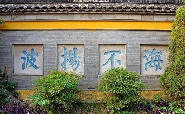 在定慧寺前面的山门迎面照影壁上有明代进士胡瓒宗所题“海不扬波”四字,为四块石刻,每字一石,长宽各0.9米,前置山石花圃,石刻长约6米,宽约2米。“海不扬波”四字朴拙遒劲,夺人眼目,赞扬焦山屹立江心,如镇海之石,驱逐水妖。“海不扬波”典故出自《尚书》,后人就以“海不扬波”比喻圣人治世,天下太平。