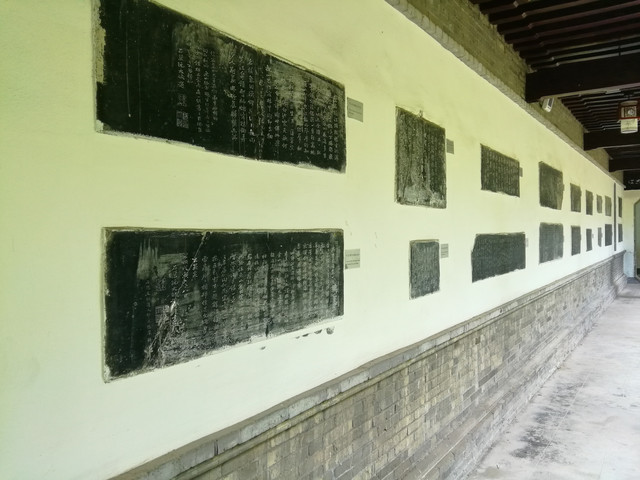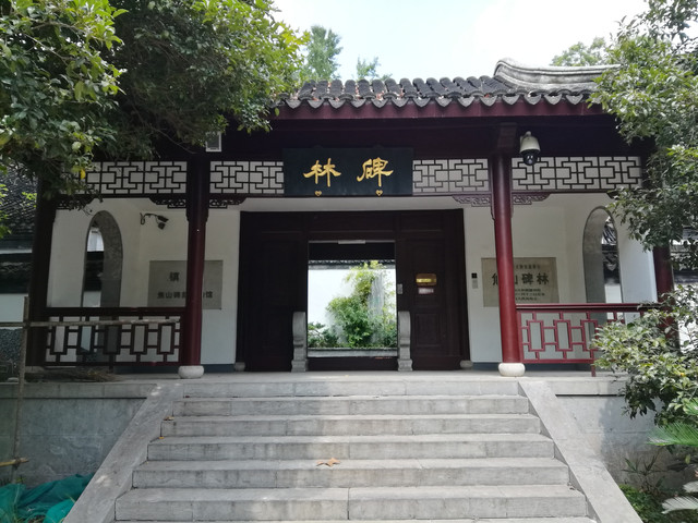 我们从观澜阁向北走,跨越小桥,绕过假山,便到了掩映在银杏树林下的焦山碑林,亦名宝墨轩,这里原是自然庵、香林庵、玉峰庵、海云庵的旧址,为北宋初年润州太守钱子高所建。轩内珍藏460余方碑刻,仅次于西安碑林,是江南第一大碑林。金山以楼阁取胜,焦山因碑林见长。焦山古碑基本,石刻纷呈,给这座名山佛国增添了不少雅趣,历来有“书法山”之誉。