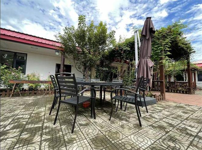 前院有假山,回廊,可以做游戏,乘凉,吃饭,烧烤,烤全羊,烤串。后院有鸡,鸭,鹅和风景秀美的山!