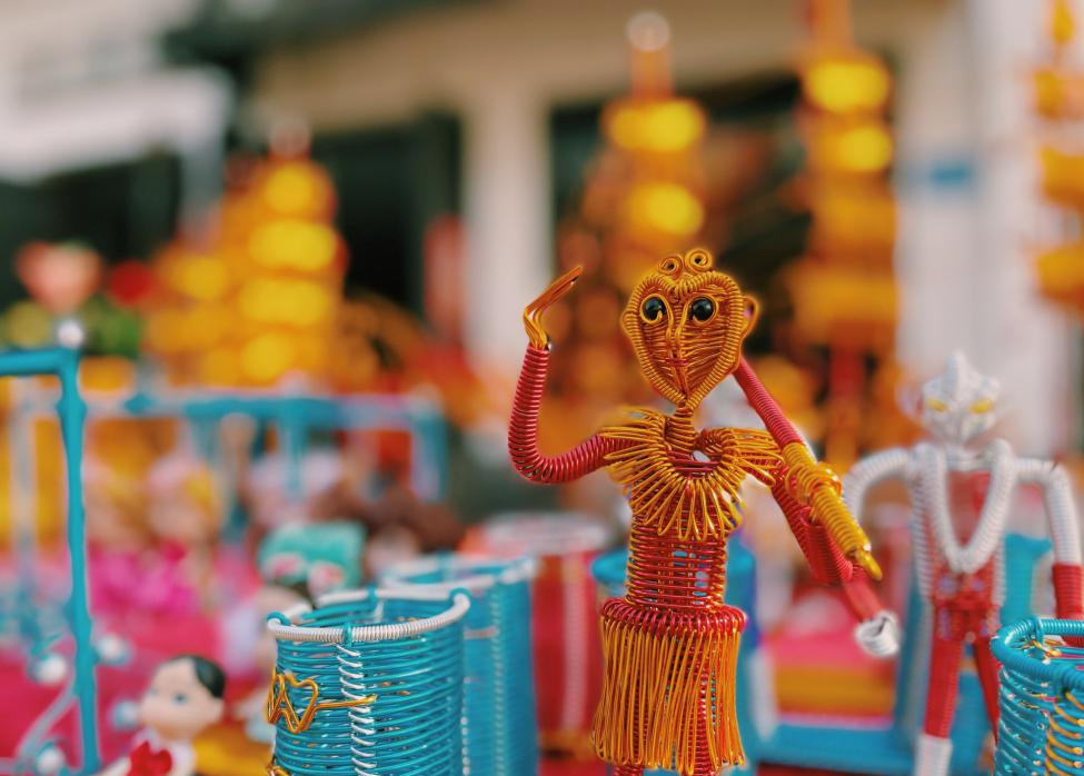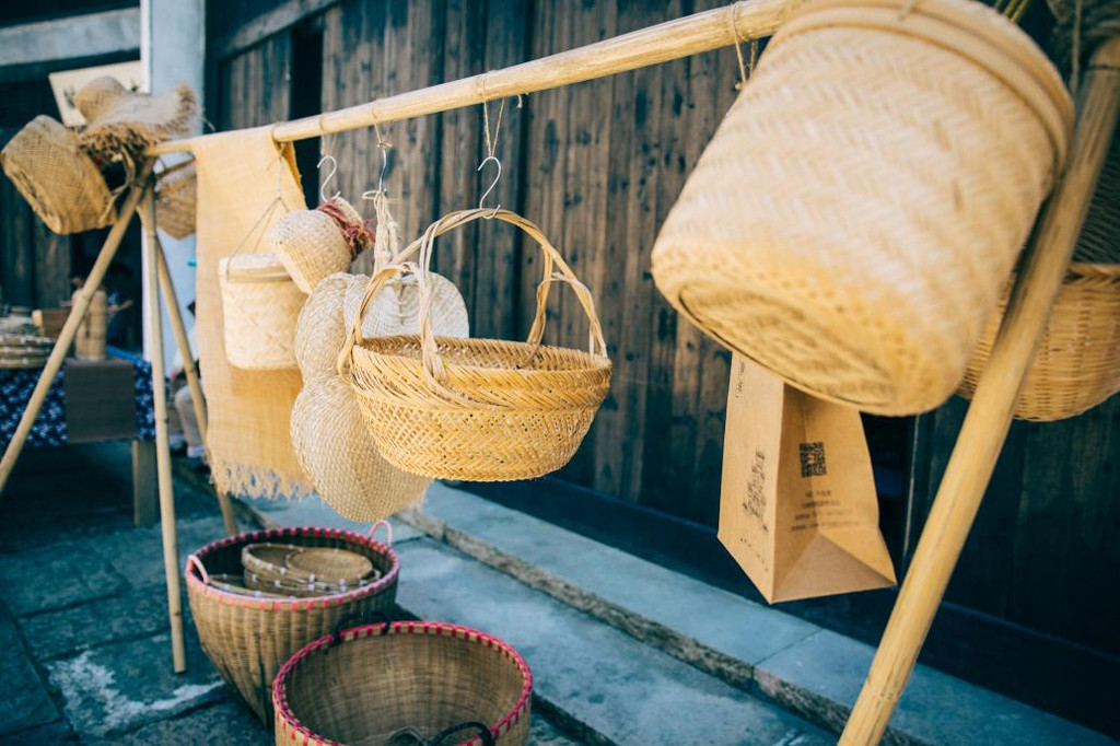 作为国内非遗生活体验基地,街道两旁设有纺织、扎染、竹编、糖画等各种传统手工艺店铺。看到感兴趣的还能上手体验一番!特别是扎染店里,有很多超级可爱的小挂件等手工制品,拿到手里就舍不得放下,最后只能一个两个三个全都带走。悬挂在墙壁上的捕鱼人、养鸟人也无一不体现着当地的民俗风情,将古城的市井气息显现无疑。