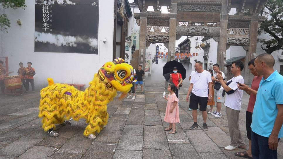 寻着锣鼓声,走向了一场声势浩大的舞狮表演。作为一项民间艺术,每逢节庆或有重大活动必有舞狮助兴。虽对这项民间艺术并非了解,仅知“南狮北舞”这一说法,但仍能观察到狮子神态变换的出神入化,感受到淋漓尽致的艺术体验。