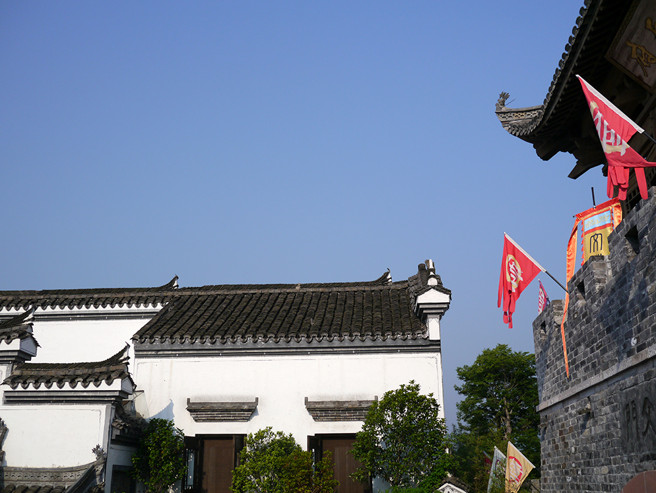 出行前,了解到目前的千岛湖文渊狮城是根据水下古城风貌还原重建的,所以是有些担心它可否将水下1400年的历史重现,但当我踏入那儿的一瞬间,所有的顾虑便统统消失了。延承古徽州的建筑特色,黑瓦白墙、飞檐翘角、依山傍水、翠微缭绕;色彩斑驳的青石门点缀其间,古朴典雅,韵味无穷,让人仿佛置身于水墨画间,清淡朴素但其自然之美感无需多言。