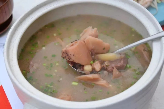 排骨藕汤一定不会全放排骨,讲究的老武汉人煨汤,除了必放的中排,还会加几截猪龙骨或者筒子骨。猪龙骨和筒子骨的骨髓里面含有大量的脂肪,炖汤的时候,因为这些脂肪的作用,可以让汤味更加鲜美。