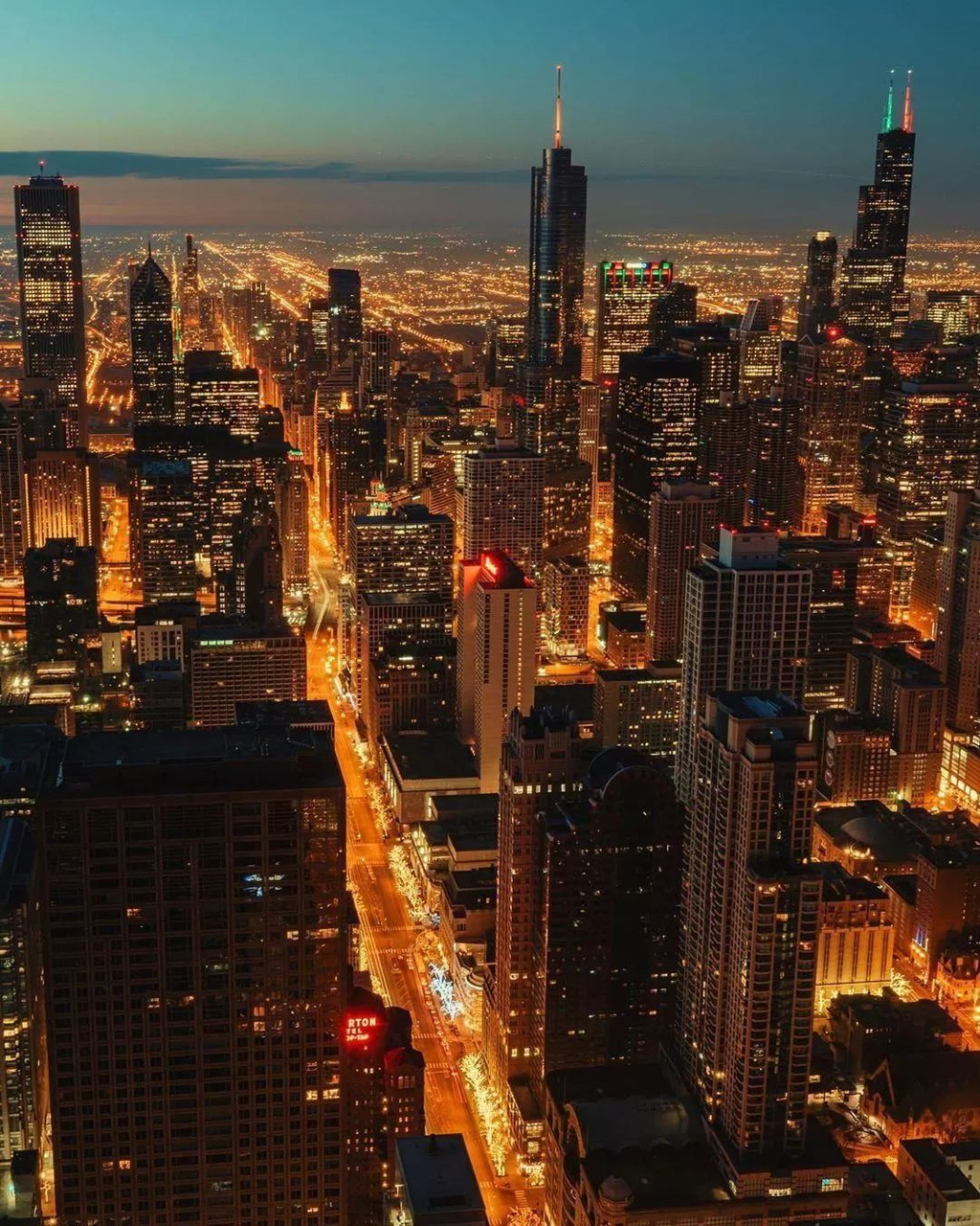 晚上,在享用完美味的深盘Pizza之后,登上一千英尺高空中的芝加哥360观景台,俯瞰这座高楼林立,灯火辉煌的美国第三大城市。