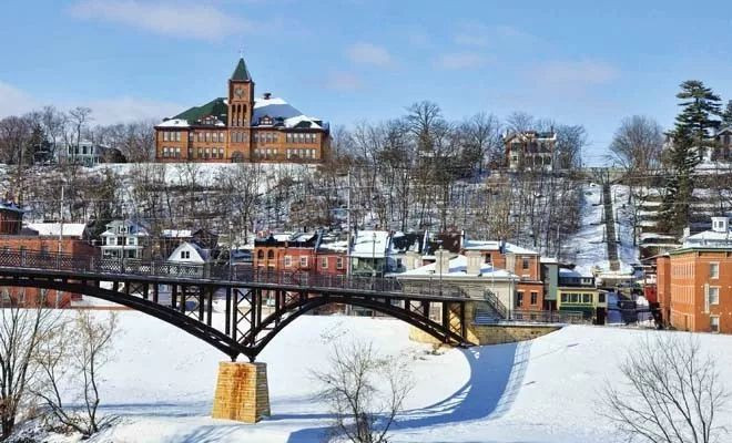 继续沿公路向北行驶约2小时,便会抵达明尼苏达州的户外运动的天堂——威诺纳。徒步、攀岩、越野自行车,划独木舟等户外运动,冬天还可以攀冰瀑。