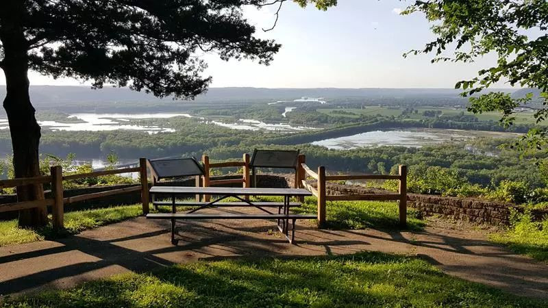 威斯康星州是组成密西西比河沿岸历史重要的一部分,也是寻源之旅的必经一站。威斯康星州的怀厄卢辛州立公园,地处密西西比河与维斯康星河的交汇处,占地1064公顷。站在公园的至高点眺望两河汇集之处,景色壮观。