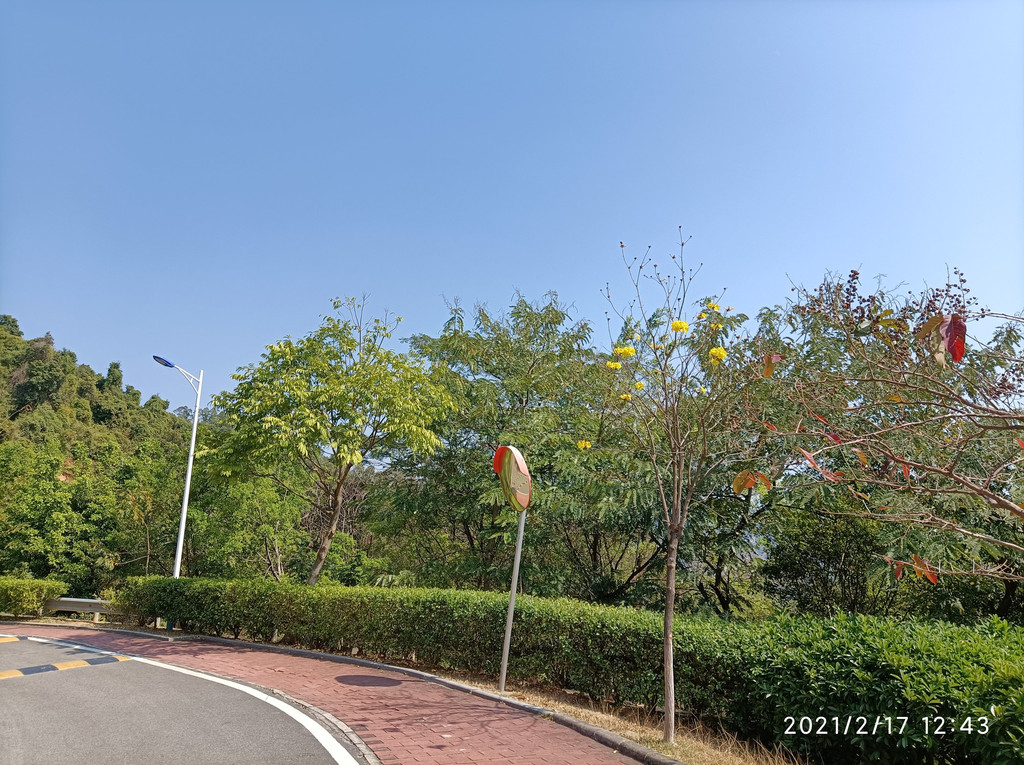 下车后,跟随大众过马路,转入登山大路。