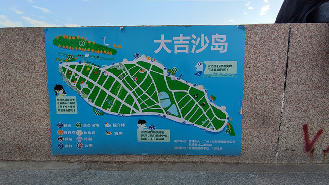大吉沙是广州市黄埔水域的一个小小江心岛,与长洲岛、黄埔港对望,岛的周边有很多自然形成的小沙洲,大吉沙周边岸线长6.02公里,面积1500多亩,岛上有400余村民,整个大吉沙岛为隶属于黄埔亩社区的一个自然村。岛上只有简简单单的几间商铺,陆路不通,水路不便,因为涉及岛上农保区问题,大吉沙暂未列入临港商务区规划,一个孤岛不得已"闭关"起来了,岛内的自然环境以及居民的生产劳动、生活起居仍保留着较为原生态的模式。