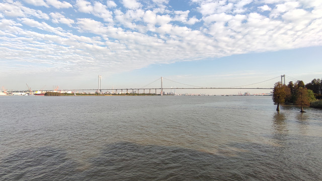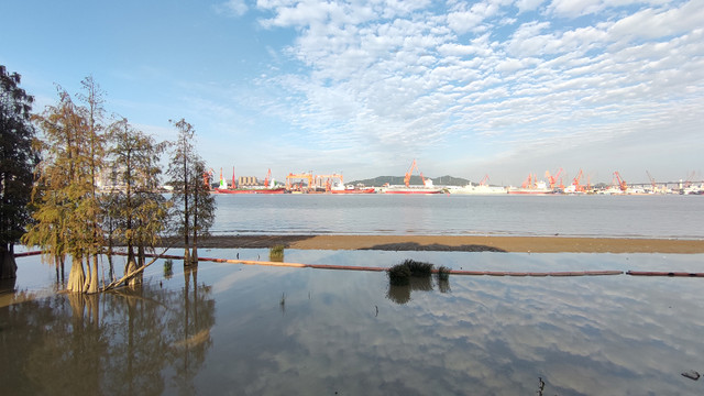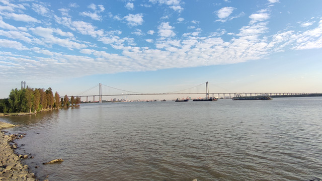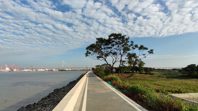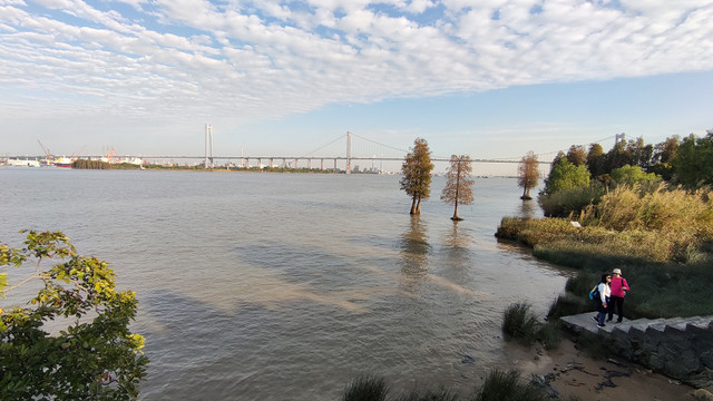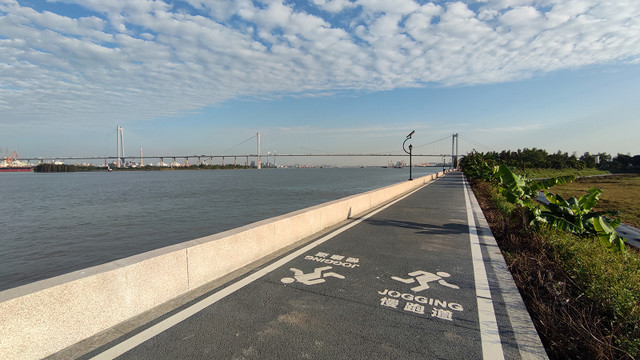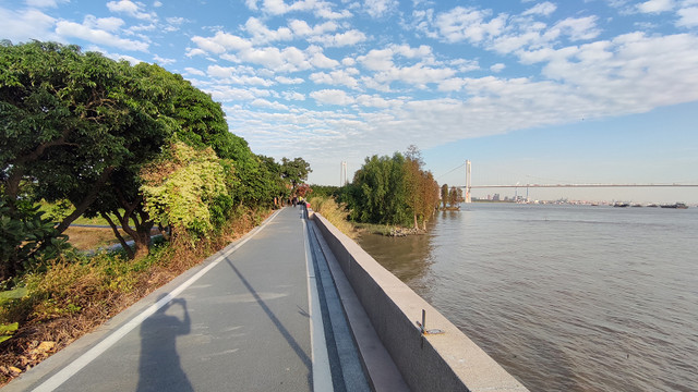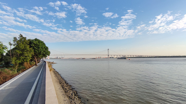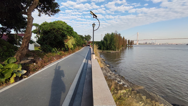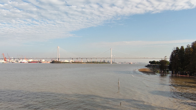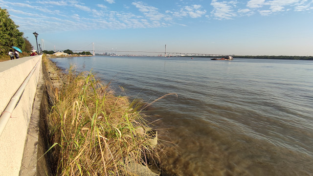 很快就来到岛的最东面,远处的大桥是黄埔大桥。