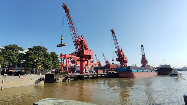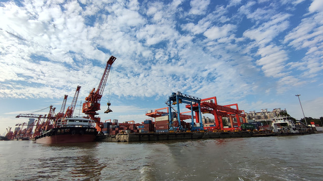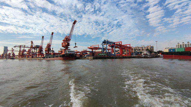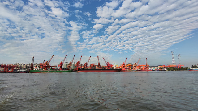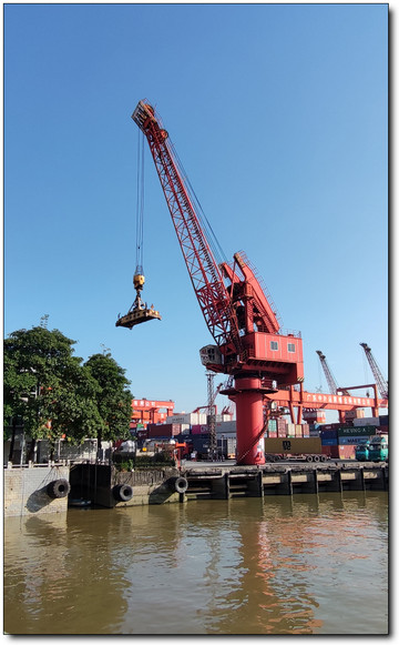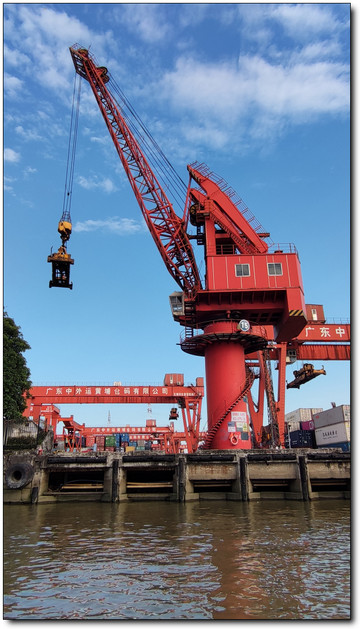 离开码头,视野更开阔了,黄埔港码头真的很繁忙,看看那些吊机不停的工作,画面很震撼、
