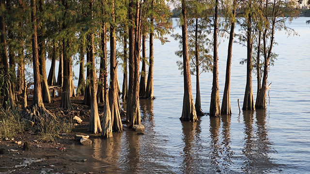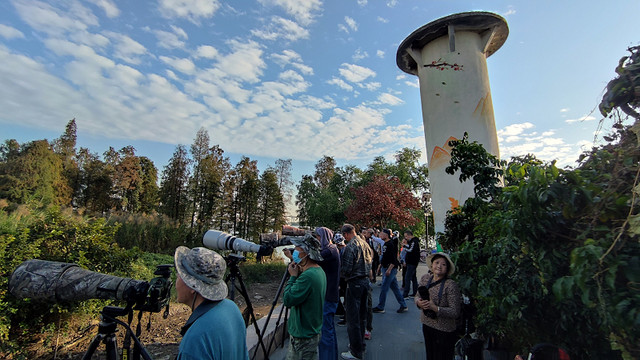 这里的水松很漂亮,鸟类也多,引来不少摄影发烧友,长枪短炮齐上阵。