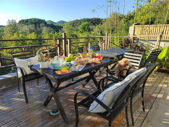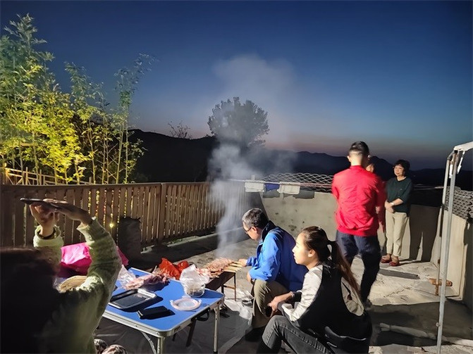 民宿二楼有个超级大的阳台,和朋友白天就坐在阳台上聊天,享受秋日的阳光洒在身上的感觉,暖暖的很舒服,夜幕将近,好友们聚在一起,上手烧烤(自备食材),搭配上音乐和美酒,尽情畅聊,拥有一次难忘的体验。