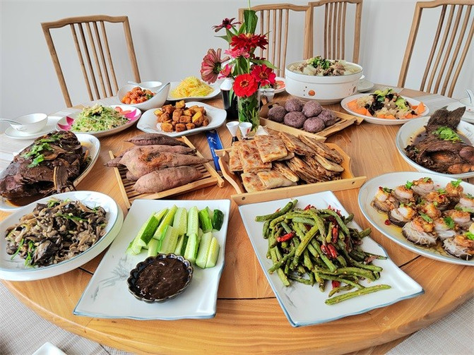 民宿餐厅位于一楼,菜品也是清爽素雅,食材取自本村当季食材,新鲜干净,菜品种类多,以家乡菜为主,红薯,玉米,大饼,炒蘑菇,农家炒肉,菜品追求的是美味与美感并存,口味很棒!民宿住宿餐食是赠送的,三餐(菜品根据季节有变化),餐厅可以容纳15-20人就餐。