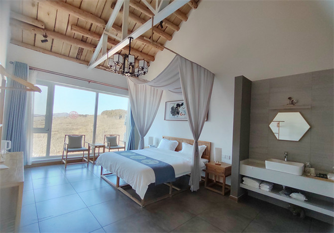 如今认为的有意义的事情就是重拾初心,找回那份热衷的爱好,让更多的人找到那份曾经的回忆。这也是我们夫妇二人创办这所民宿的初衷。愿彼此相互惦念成为一种幸福。民宿客房:二楼共六间客房,全部超大落地窗,住宿12人,客房内空间十分宽敞,走进来的印象超级好,房间比较大,该有的设施都有,整个房间布局很舒适,也超级干净。