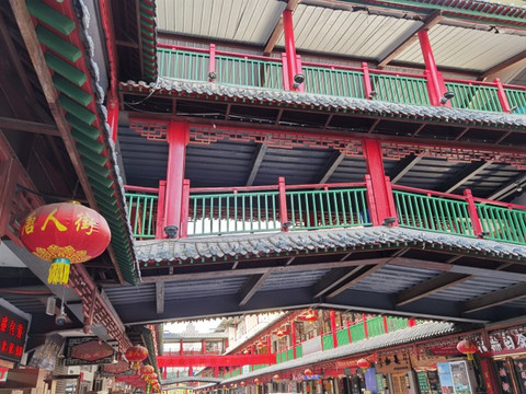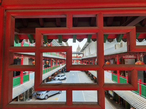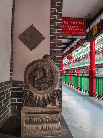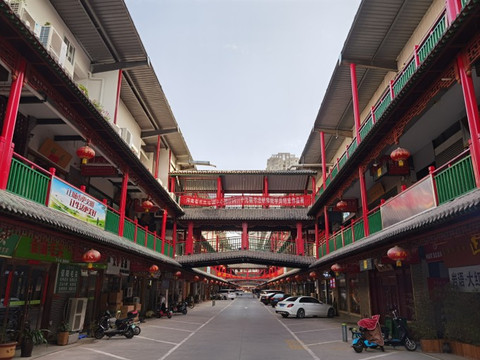 文化广场被称为中原文化一条街。是一座仿明清式街区建筑,整个古街大胆采用红绿搭配,耀眼夺目,复古的建筑气势磅礴,华美大气。