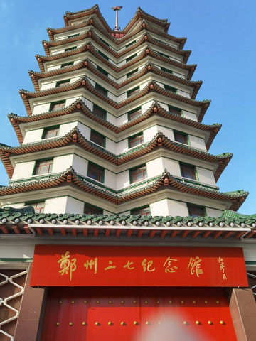 纪念塔坐落在二七广场中心,为纪念1923年2月7日京汉铁路工人大罢工而建。二七纪念塔现名为二七纪念馆,主要陈列展示京汉铁路工人大罢工的历史起因、 经过和结果, 展品有实物、 图片和文字资料等。