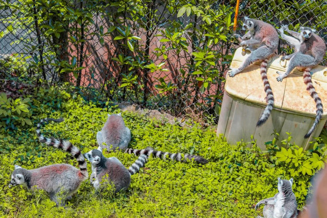 环尾狐猴,也是超级可爱,憨憨的,一群堆坐在一起晒太阳,光是看着都觉得很舒服。