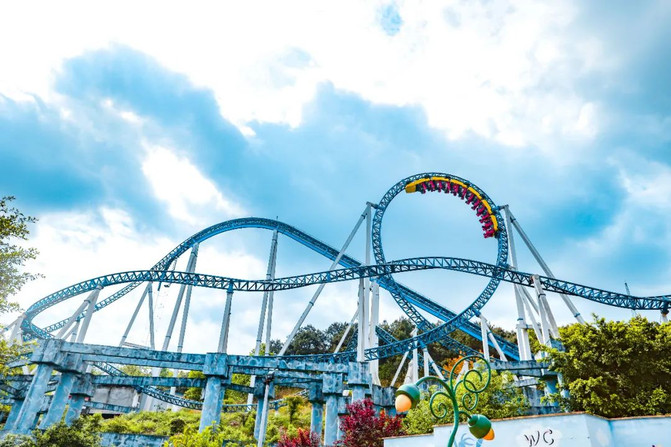 呼啸穿过丛林,园内的十环过山车,光是看看都觉得胆战心惊,非常刺激,胆大的一定要来尝试。