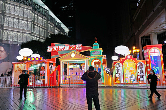 慢悠悠的走到步行街,看着还是挺多人的,不像之前那么冷冷清清了。这几天旅游局在解放碑举办了一个重庆澳门周,搭建了一些铺子展示着各种各样的产品,吸引了很多人驻足观看。