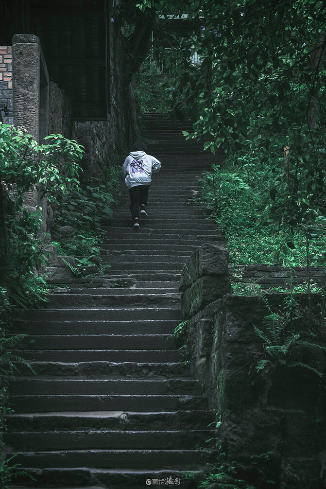 ▲不愧是百年古镇,绿树掩映着的青石板路,在岁月的长河中不知迎来过多少行客。这里采用竖构图,可以让石梯具有强烈的延伸感。