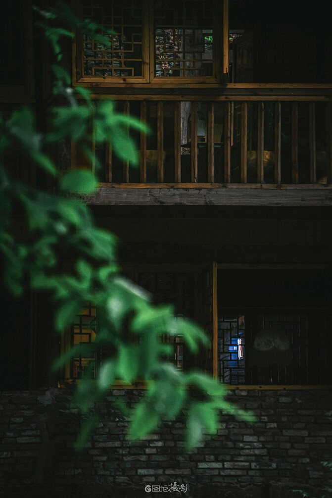 ▲这个场景仿佛让人置身于某部古装电影里,穿着长衫,手握书卷,信步在木廊之上……这里采用竖构图,用树叶做为前景,营造出照片的层次感。
