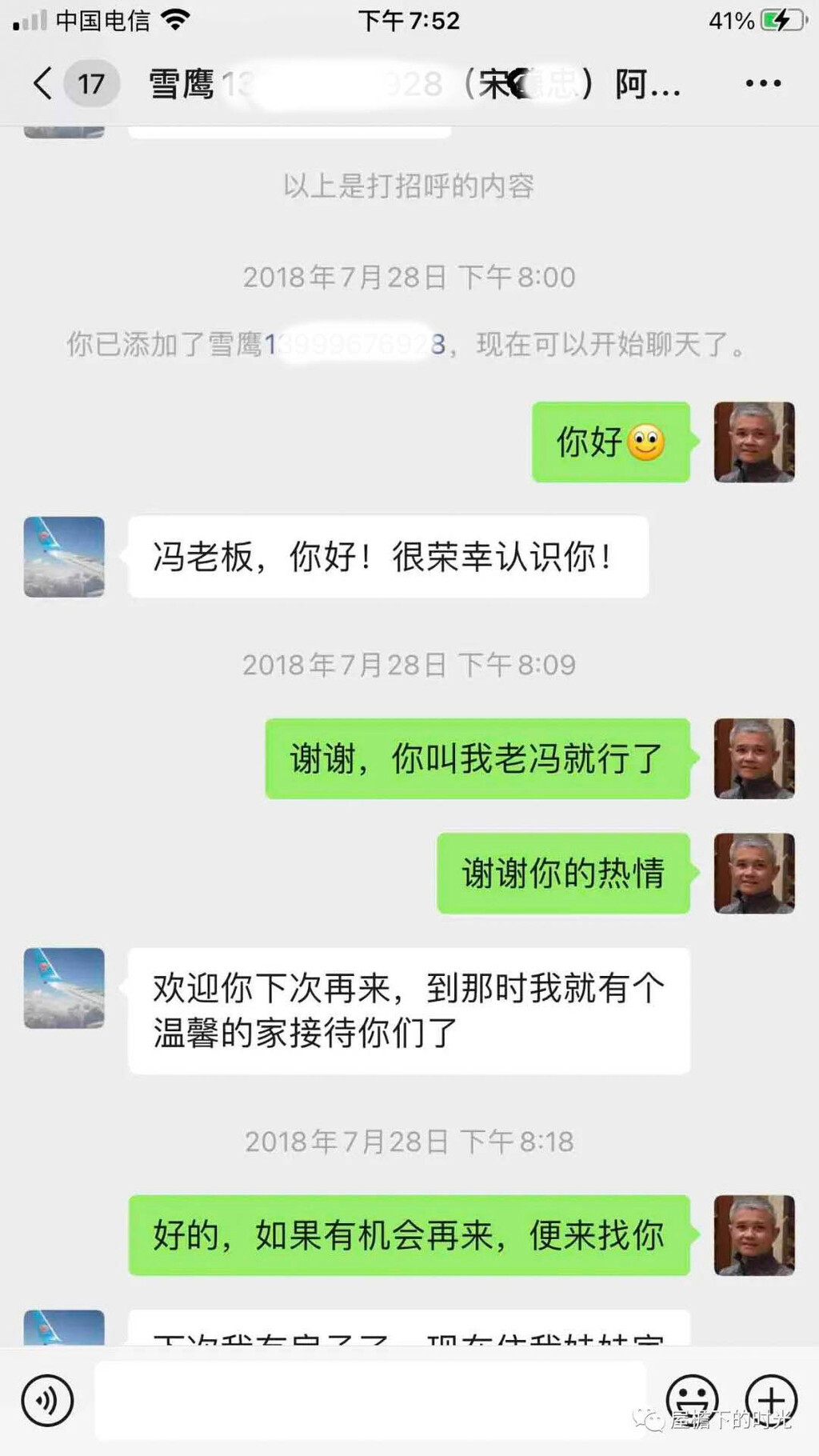 后来在手机微信弹出的通讯录,加了他微信,其实阿克苏的微信昵称叫天山雪鹰,有点蛮利害的样子。