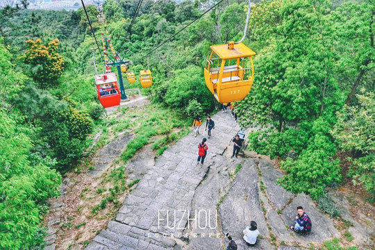 登鼓山的方式有几种,开车上山,或是自己顺着步道向上走,也可以乘坐复古铁皮镂空缆车,往返70元,先别觉得贵,单程乘坐时间足足有20分钟,还能省去1-2小时的登山路程,其实真挺划算!