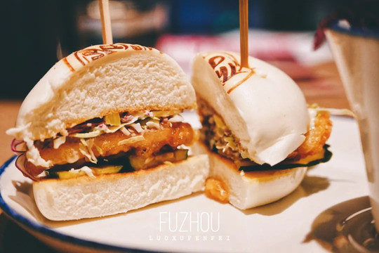 谁曾想,咱们大馒头和各种肉类的组合口感竟然完全不输汉堡,甚至还有反超的效果!福州东湖万豪酒店的特色餐厅“包香”,不仅名字取得好,味道也特别赞!洒满海鲜的沙拉,淋上了松茸酱汁的薯条,搭配了两种酱料的一磅炸鸡,以及牛肉、猪肉和鱼肉的大“包”,看着就十分诱人,吃起来爽感十足!