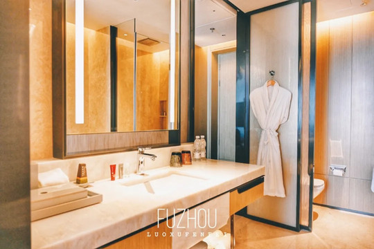 酒店设计及公共空间的艺术品均出自名家之手,恢宏大气,且讲究细节。从房间内向外望,户外泳池的婚礼殿堂非常漂亮,仿佛是镶嵌在爱心中的一颗钻石。房内设施齐全,有专门的泡茶器具,也为万豪的会员准备了相应的礼遇。洗手台上特别提供了洗手液和漱口水,十分贴心。卫浴分离,沐浴空间很大,还有可以泡澡解乏的浴缸。窗帘是电动开关,进入房间无需插卡,不愧是数字小镇里的酒店,智能化服务做得非常好!