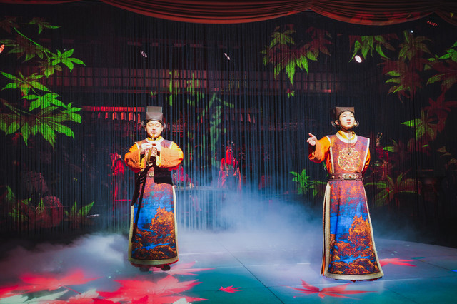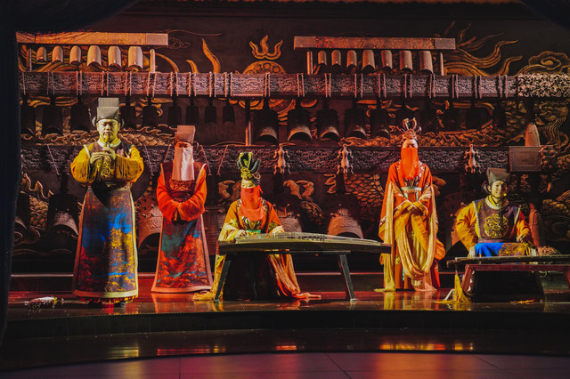 其中最具有宋韵的是《宋廷梦乐》在宣德殿二层,灯光闪烁间,仿似已经置身歌舞升平的古时宫殿,而乐师们精湛的曲艺以及着宋装的女子舞动间,今夕何夕,已然忘了身在何处。