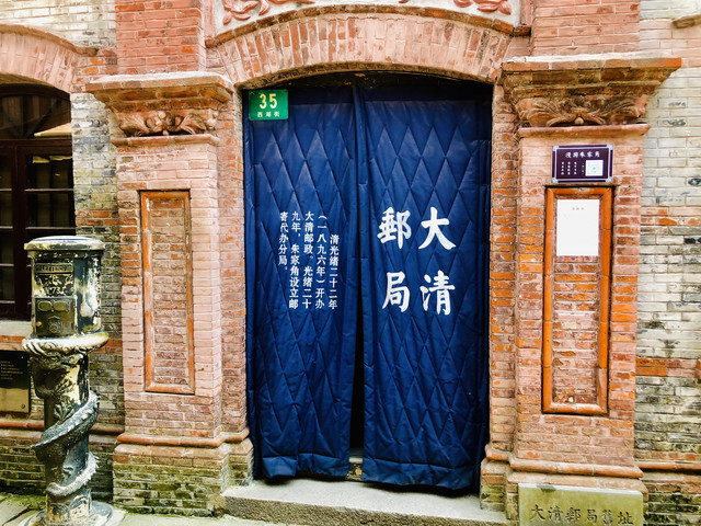 二楼是多个朝代邮政介绍以及清代至民国的珍贵明信片和信件原稿展示。 △大清邮局门帘上写有相关介绍 △一楼的老明信片展示