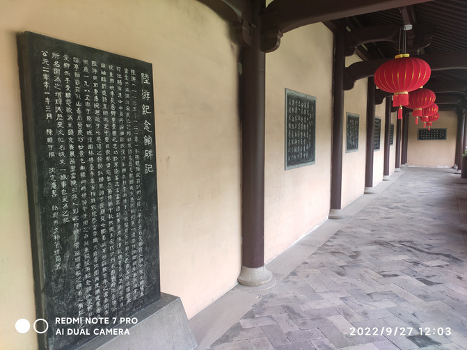 陆游纪念馆位于沈园古迹区南侧;由陆游史迹陈列(安丰堂)、碑廊、务观堂和雕塑等组成。馆内展出大量手迹、照片、画幅、善本、托拓片、实物模型等,反映了陆游爱国忧民和作为一代文豪的辉煌成就。