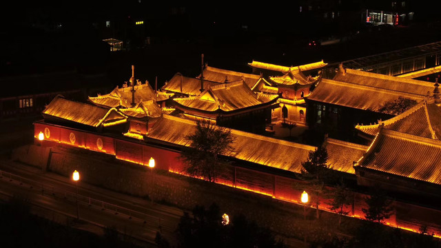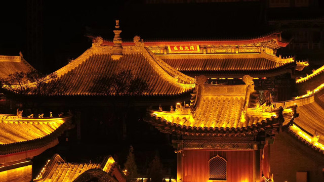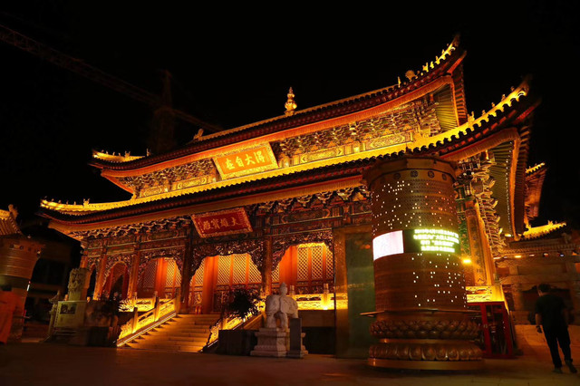 如今展现在我们面前的广化寺,这个占地9300平方米的偌大寺宇,则是清代道光年间一名叫纳不海的喇嘛复建的。这个坐北向南由低而高,呈四方形的黄庙,建筑得宏阔而大气,庄重而深幽,呈现着清代豪华精巧的建筑特色和黄教寺庙的风格,是一座典型的汉地“喇嘛寺院”。中轴线上,先后布列着山门、天王殿、文殊殿、和文殊阁楼,东西寮房僧舍九间,合成一个十八的吉祥数。这里的山门和天王殿是分开建筑的,中间隔开一段距离,其间筑一宽阔的石阶踏道,形成特色。踏阶之上便是三开间单檐歇山顶的天王殿,殿中的四大金刚横眉怒目,威而不怖,韦陀将军神采凛然,儒雅不俗,纵观这里的殿建塑像,透出的是一种雍容大度的气息。天王殿之后宽阔的殿院中,便是广化寺的主要建筑大文殊殿,但见两根明柱上镌刻着一副镏金对联:道场遍十方,无人无我;佛法超三界,非色非空。这座殿堂就是历史上的大雄宝殿,殿为三开间,面宽14.5米,进深10米,单檐四阿顶式,顶脊尖尖突起,有着汉藏佛教寺庙建筑交融的鲜明特征。通体看去,古朴典雅,落落大方,是五台山保存完好的清代建筑。殿内新塑的“三大士”,中间为文殊菩萨,两侧为普贤和观音,三塑像造得精致细腻,面目清丽优美。在这个殿堂中,曾有历史上名响五台山的十六尊者像,每位尊者刻在一块高1米,宽0.5米的石板上,石板为黑底,刻石抹灰,素雅悦目,十六尊者的表情手脚身姿各不相同,成为一绝。可惜这组珍贵的文物,不知毁于何时。