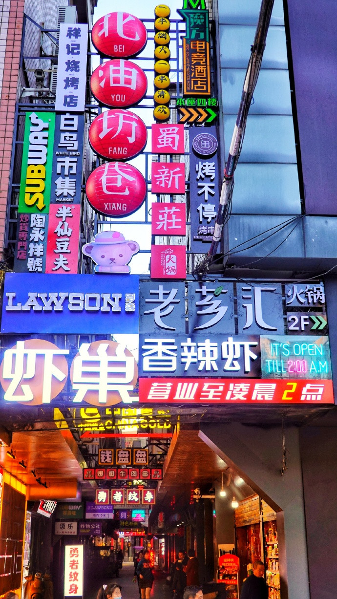 记忆中的淮河路步行街也变了模样。加入了许多霓虹灯和涂鸦,入了夜灯箱亮起,有点港风的味道。北油坊巷最是惊艳,就连大排档一条街的小商贩们也多了许多人情味。