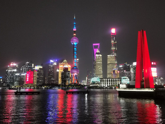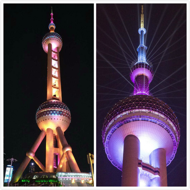 华灯初上时,东方明珠会变成彩色,在旁边的天桥上与之合影角度最好。