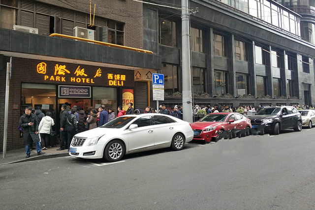 南京东路向西逛到底,从新世界商场开始就算南京西路。继续往西走到国际饭店,循着黄油的香味,右拐到黄河路上,看到门口有人排队的,就是著名的国际饭店西饼屋。蝴蝶酥一定要买哦!从1934年国际饭店落成,一直热销到今天。“上海最好吃的蝴蝶酥”,名不虚传。每人限购2袋。对了,顺便可以进国际饭店大堂,旗杆垂直处有“上海城市坐标原点”标志。