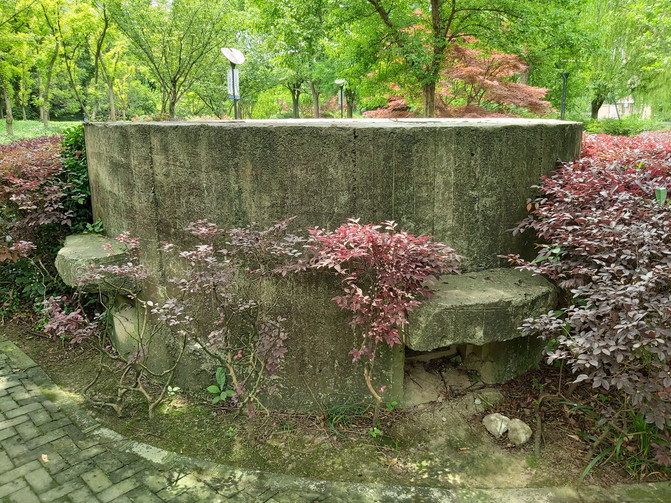 下列碉堡位于浦东新区洋泾镇泾西一村8号门口绿化带上。