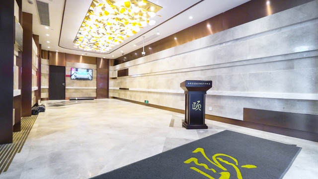 U型的楼层窗格设计,让我一改对现代酒店建筑格局的印象;紫色色系,在南京路,显得格外醒目,同时不乏神秘之感。酒店一楼设接待区,金黄色的“颐”字,突出了品牌的精髓——尊贵;在古代,皇室御用颜色就是这种金黄色,辅以书法logo字体,“民族品牌”酒店之感油然而生。