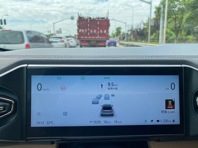 早上9:00,从市区(浦东新区)出发,一小时左右到达东海大桥,再向前行驶30分钟左右就能抵达洋山深水港。驾驶着ES8仿佛有一种开着“智能坦克”出街的错觉,在驾驶的时候,仪表盘上会清晰得显示行驶道上的车况,有一种说不出的安全感。
