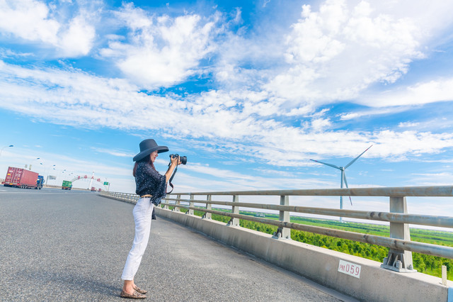 这里的海上发电厂,是我国第一个海上风电场(所以这里真的巨冷,风巨大!),一台风车就有大概60米长……放在一起整齐划一的转动,这种场面在用视觉去捕捉的过程中,真是太难用言语去形容……快要舍不得眨眼……