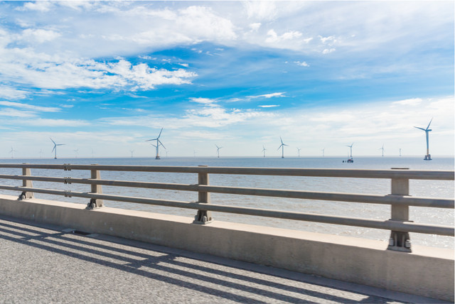 东海大桥两边风景不错,一排排的风车很美。