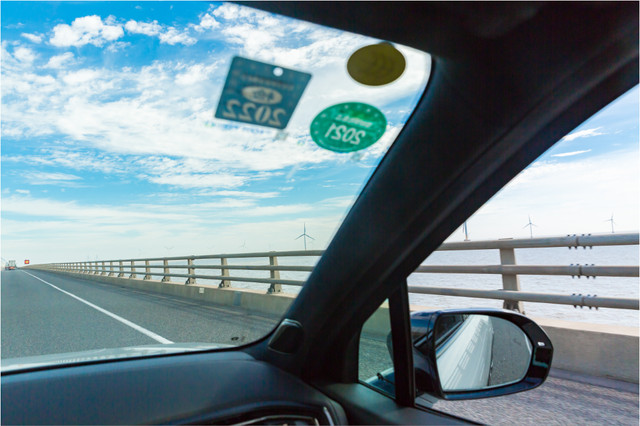 这是一个比较少人知道的港口,出发当日的天气非常好,经过东海大桥,一溜儿的海上风车衬着蓝天,就像漂浮在海天之间一样。