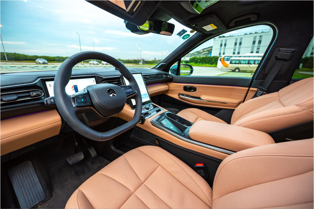 还有一些不得不说的,就是在这辆车上有一些比较特别的设计,像是中控台的位置ES8就有一个中空的设计,女生用来放包包和高跟鞋那是最好不过了。独具品牌特色的“女王副驾”,全部用的都是Nappa真皮,堪比豪华沙发,再搭配上通风和按摩功能,享受夏日惬意出游。