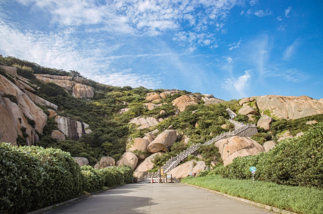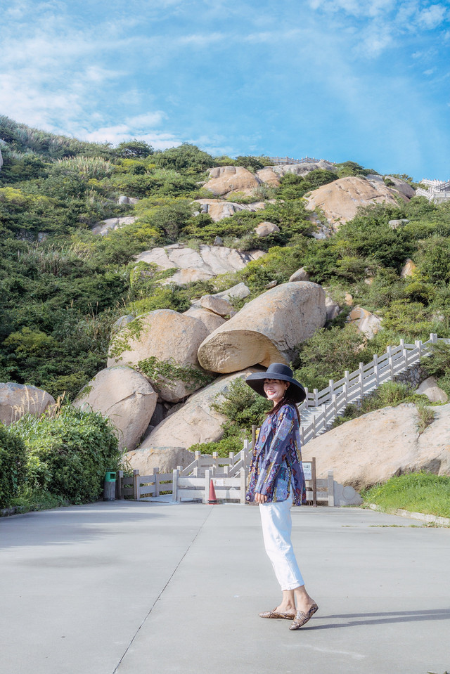 跟着导航,在西岙南路出口下桥后,有一个公安局的地方,左转就是啦,门口有人收停车费10元,然后开进去就是景区了。景区很大,边走边玩可能要3-4小时,门口有一个小杂货店卖点零食泡面,停好车涂好防晒,我们就开始爬山啦。(在这里提醒各位,在第一个高速分叉路口千万不要右拐下车,不然来回就要多开100公里,把东海大桥重走一遍,别问我怎么知道的,不说了,都是泪)