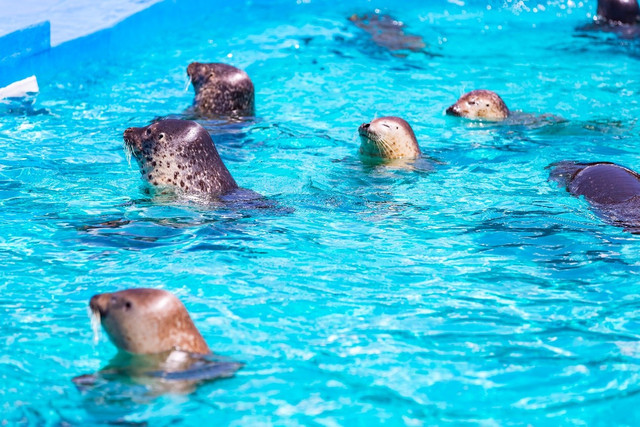 这里面有好多海狮和海豹,这不是一个封闭的场馆,分为上下两层,楼上是个半开放式的,海狮和海豹都慵懒的躺在那里晒太阳,特别可爱,还能听到他们此起彼伏的叫声~