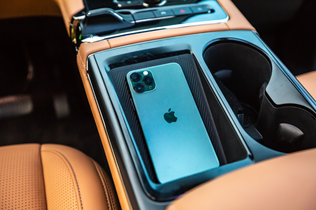 车内的一些细节设计也非常人性化,物品摆放位置也设计得很顺手,就比如这个中控的无线充电,日常除了手机还可以给车钥匙充电,既美观又实用。