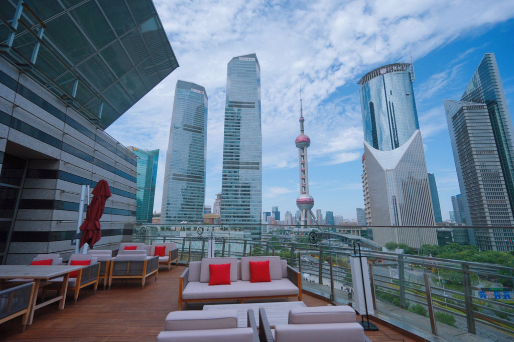 露台而坐,整个魔都金融区域景色一览无余,东方明珠也仿佛近在咫尺,角度非常棒。