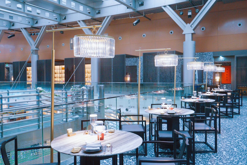 餐厅开在能欣赏到魔都风采(像巨人一般巍然屹立、傲对碧空的高楼大厦)的金茂大厦裙楼内,作为魔都一张金融名片之地,经常会有人来这里打卡拍照,也是许多摄影爱好者们的拍照宝地。熙来攘往的人流,高速运转的节奏将繁华而又繁忙的景观烙印在陆家嘴的天空下或者夜幕中。